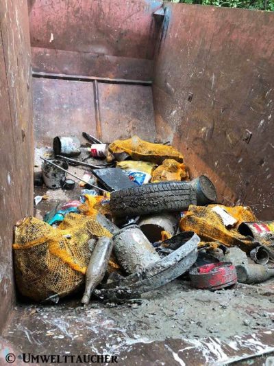 Zu den geborgenen Gegenständen zählten wie gehabt alte Dosen, Flaschen, Plastikflaschen, Becher, Plastikbesteck, diverse Kunststoffabfälle, Geschirr, Fässer, Autoreifen, Seile, Teile von Glasscheiben und eine Menge anderer Glasscherben, alte Einrichtungsgegenstände, ein alter Ofen, Kunststoffrohre, wie ein Sonnenschirm, der dem Wind anscheinend nicht mehr Stand gehalten hat. Auch einzelne Raritäten wie ein altes Waffenrad, sowie zwei alte Medizinflascherl zählten zu den Fundstücken.