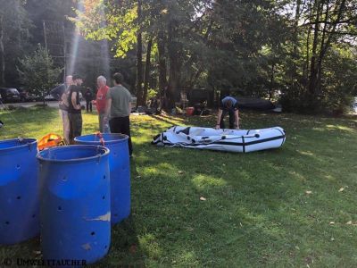 Spezielle Ausrüstung: 2 Boote, Sammelfässer, kleiner Bagger