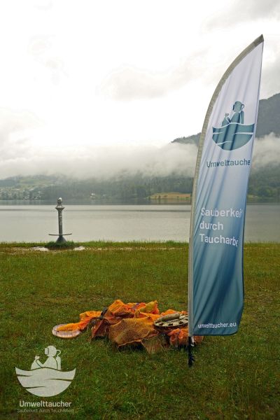 Trotz Regens und einem mit dicken Wolken verhangenen Himmel traten 12 Taucher an, um an einem Badeplatz des Hallstättersees abzutauchen und raus zu holen, was den Badespaß und das Ökosystem trüben kann. Auch der Bürgermeister der Gemeinde ließ es sich nicht nehmen und stattete uns einen Besuch ab, über den wir uns natürlich sehr freuten.