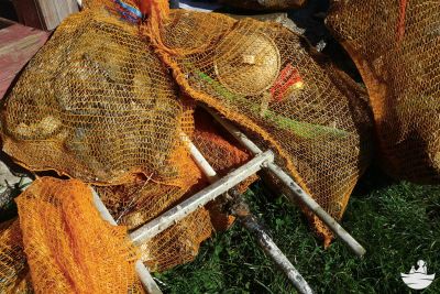 Bereits nach weniger als 30 Minuten Tauchzeit wurden die ersten übervollen Sammelnetze an Land gebracht, das Sammelnetz gewechselt und gleich wieder abgetaucht. Nachdem die erste Partie Pressluftflaschen leergeatmet waren, gab es mal eine kurze Pause zur Stärkung und Flüssigkeitsaufnahme.