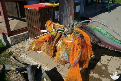 In die Sammelnetze wanderten viele Haarbänder, Zigarettenstummel, Kronkorken, Plastikbecher-, Flaschen- und Sackerl, Glasflaschen, Scherben, Dosen, Kleidungsstücke und Handtücher, Schwimm- und Taucherbrillen, Flossen, Anglerzubehör und so weiter.