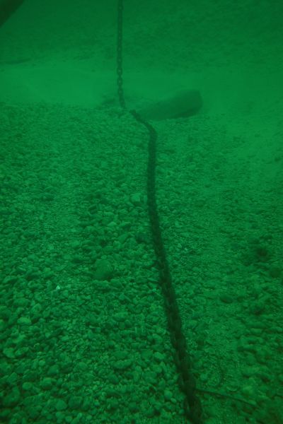 Auf 8,2m Tiefe liegt der 3. Bojenstein, westlich der 5,8m Boje.