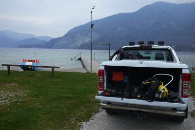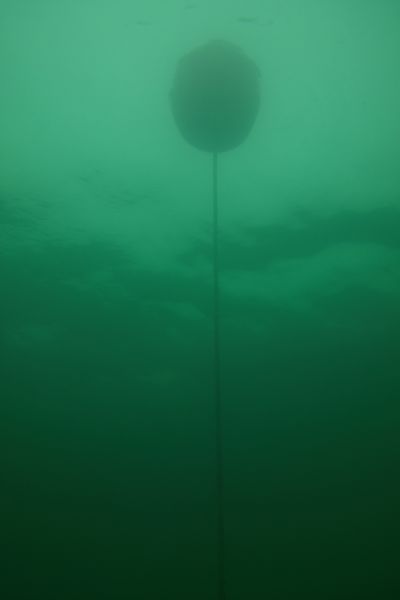 Eine der Bojen wurde im Herbst abgerissen. Der Seilschoner hat sich gelöst und das Seil ist durch Wellenbewegung gerissen. Neuinstallation mit Kettenglied zwischen Bojenstein und Seil. Diese erfolgt voraussichtlich im Juni.