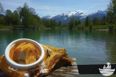 Ein herrlicheres Panorama konnten wir uns für unser zweites Clean Up in diesem Jahr nicht vorstellen: ein sonniger Tag, glänzendes Wasser, dahinter die noch verschneiten Berge. So empfing uns am vergangenen Samstag der Bürgerausee.