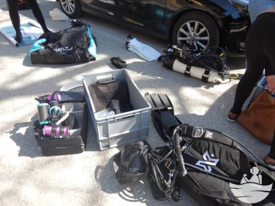 Highlight waren auf alle Fälle 4 Gummimatten, die ebenfalls zum Sprungturm gehörten.Mit diesen Matten und dem anderen geborgenen Müll, kamen wir auf ein stolzes Resultat von 84 Kg.