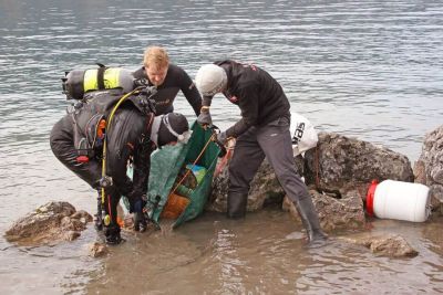 Unsere Ausbeute wurde nach Beendigung der Tauchgänge zur ordnungsgemäßen Entsorgung übergeben. Ein Glück hatten wir auch was das Wetter anging, denn an beiden Tagen kam schon am Vormittag die Sonne zum Vorschein und beobachtete unser Engagement bis in die späten Nachmittagsstunden.