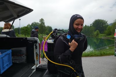 Das Team rückte aus und nachdem wir kurz die grandiose Sicht genießen durften, befreiten wir den See von alltäglichem Kleinmüll. Darunter befanden sich die üblichen Verdächtigen wie Verpackungsmaterial, Zigarettenfilter, Glas- und Plastikflaschen, Plastikbecher, Getränkedosen, Gläser, stylische Sonnenbrillen, Kunststofffolien, Reste von Einmalgriller, ein Regenschirm, diverses Angelzubehör, Schuhe, Flossen, Schwimm- u. Taucherbrillen. Ein Highlight war eine Krücke, die geborgen wurde (hierzu bitte keine weiteren Fragen :D )