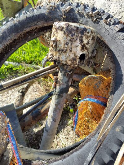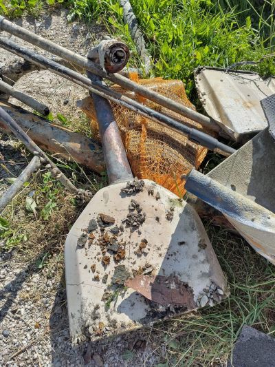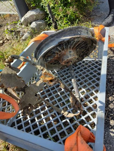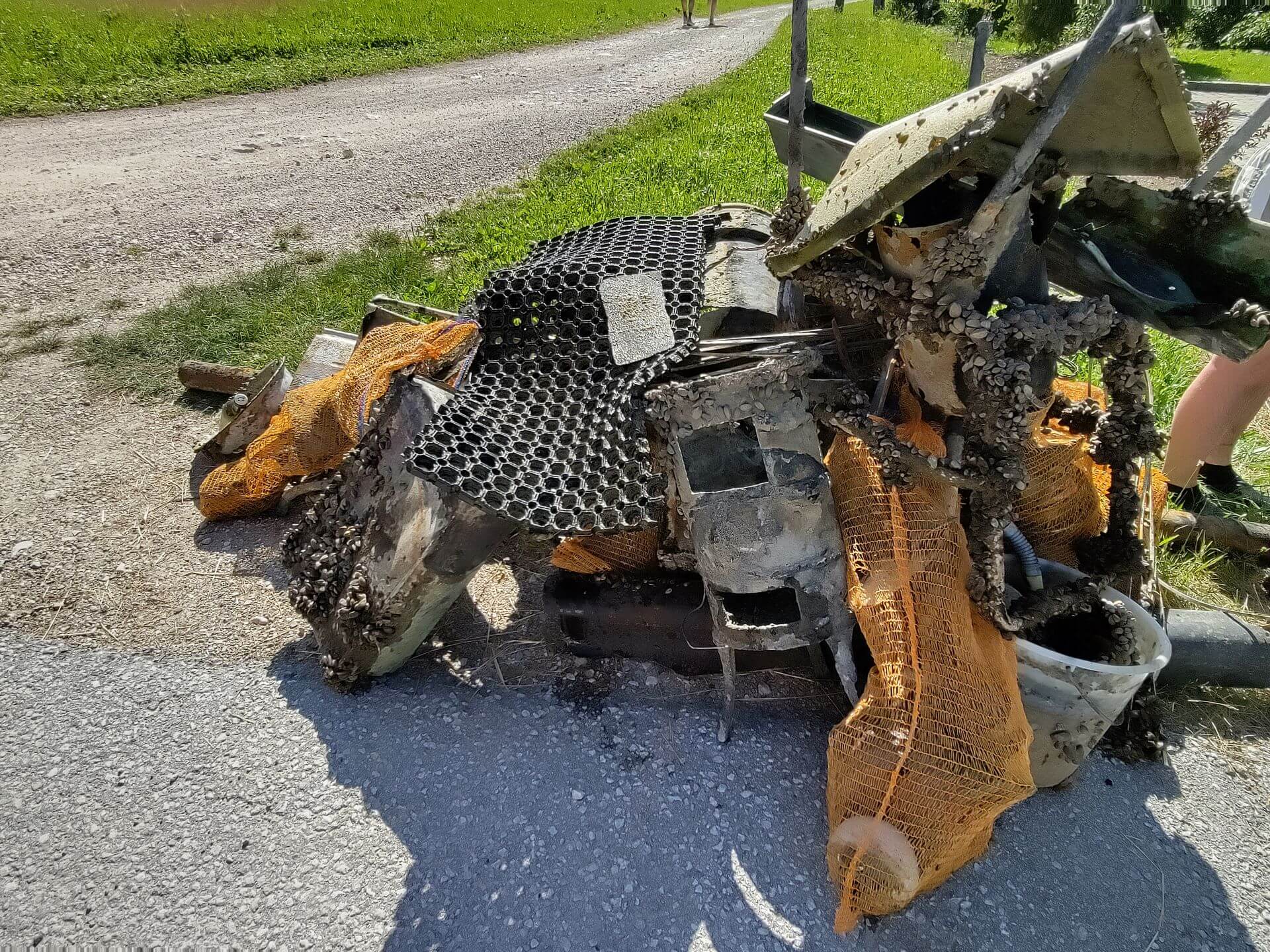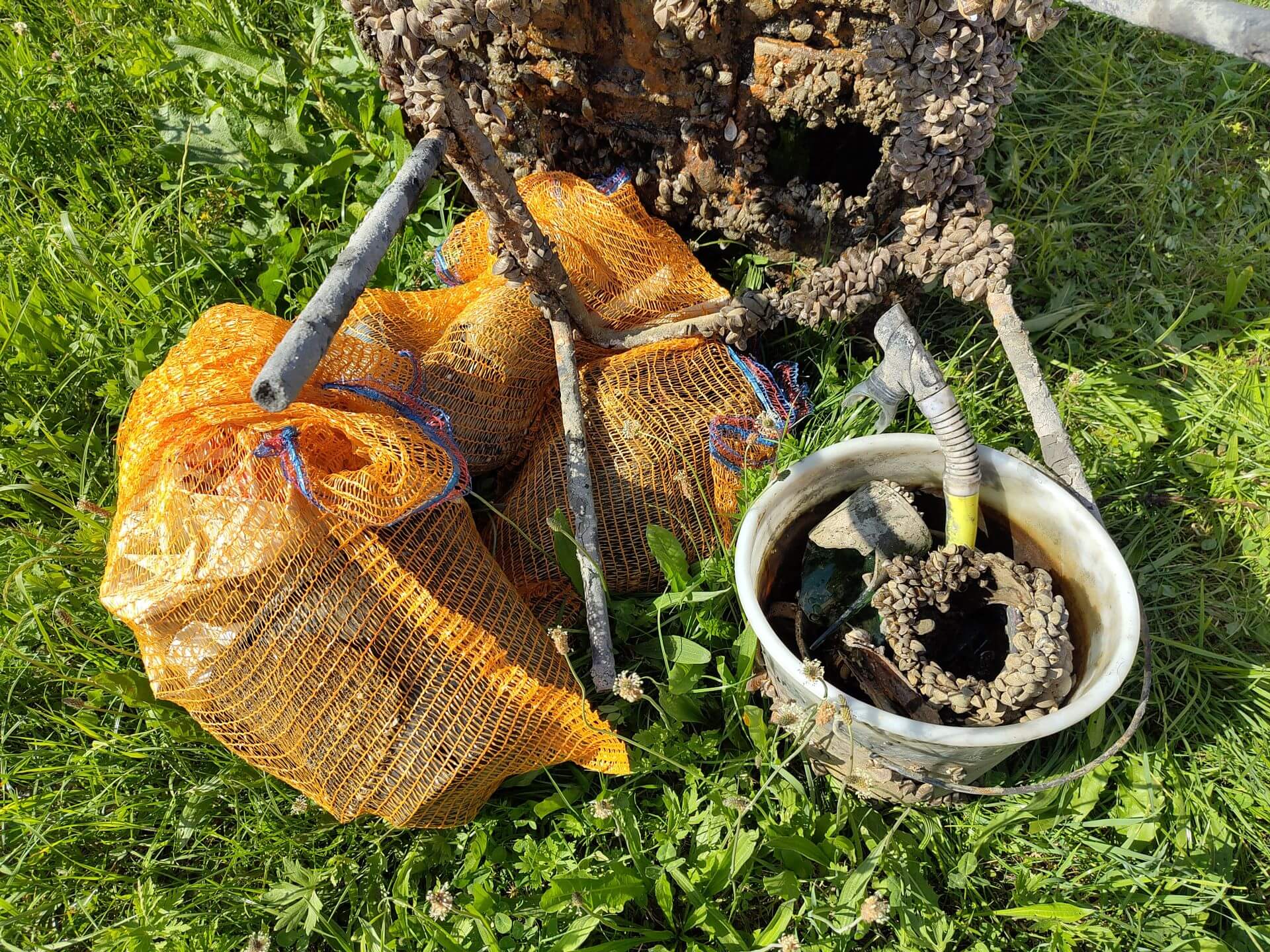 Wir fanden dort gleich mal verschiedene Gegenstände – Töpfe, Altmetall, Flaschen, Teile eines Dachs, Dachpappe, Teile eines Fahrrads, eine Gummimatte. Es wurden an diesem Tag außerdem 2 Öfen, Teile einer Toilette, ein Ölmesser, alte Schubladen und andere Dinge gefunden. Diese Dinge stammen zum Teil aus einer Zeit, in der es noch keine Recyclinghöfe gab, zum Teil werden sie aber auch verloren oder vom Sturm in den See geweht. So freute sich beispielsweise die Hausbesitzerin sehr über die Rückgabe eines Metallblumentopfes, der während eines Sturms im See verschwunden war.