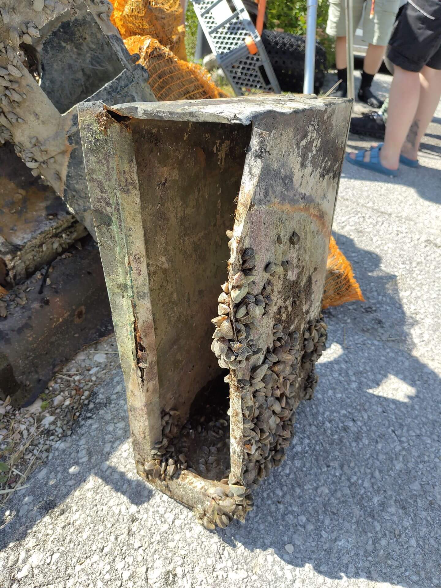 Nach zwei Tauchgängen an diesem Tag kamen wir schließlich auf ein Gesamtgewicht von 281,29 kg bestehend vor allem aus Altmetall.