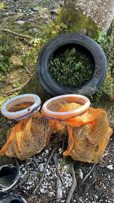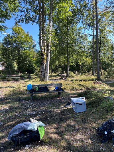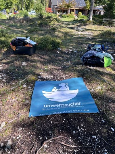 Anschließend wurde pausiert, neue Kräfte gesammelt und alles wieder angezogen für Runde 2: Nochmal in die andere Richtung, diesmal zu dritt und nochmal auf einer anderen Tiefe nachsehen. An einer Stelle führte dort ein Bach ins Wasser. Dort tummelten sich allerlei Fische und es wurde zu einem leichten Drifttauchgang, aber auch dort wurde kaum Müll gefunden. Es scheint, dass der Grundlsee zumindest an diesen Stellen sehr sauber ist und Anwohner:innen und Gäste sorgsam ihren Müll entsorgen. Das heißt zwar für uns, dass unsere „Ausbeute“ geringer ausfällt, freut uns aber auch sehr, denn das heißt, dass hier die Menschen den See nicht als Müllhalde behandeln, sondern sorgsam mit der Natur umgehen. Nach zwei Tauchgängen war es schließlich genug: Es wurde alles wieder eingeladen und nach einer kurzen Kaffeepause der Rückweg angetreten, um Kräfte für Tag 2 zu sammeln.