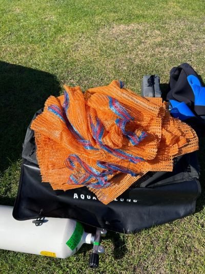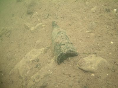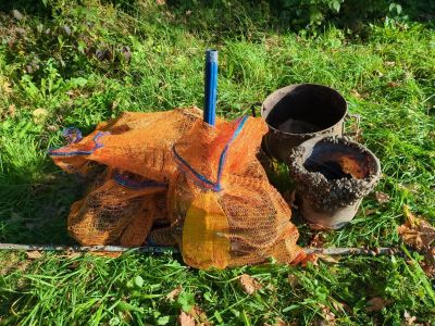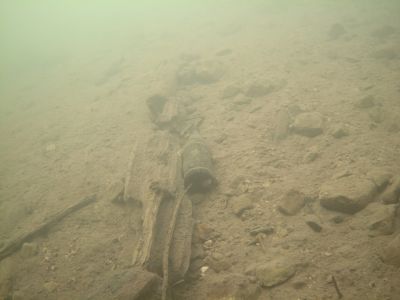 Hier fanden wir etwas mehr Unrat als am Ort zuvor. Als auch dieser Tauchgang vorbei war brachten wir mehrere volle Sammelnetze, einen Metalleimer, einen großen Kochtopf und ein halbes Paddel an einen für die Abholung passenden Ablageplatz. In den Sammelnetzen befanden sich Metallteile, Matratzen-federn, Plastikbecher und Aludosen, ein Badeanzug und wie zuvor diverser Kleinkram.
