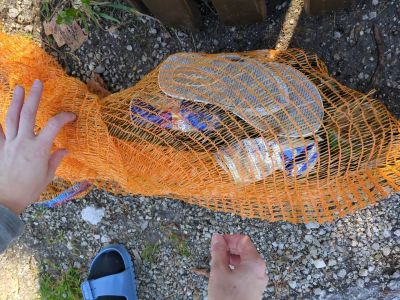 Zu unserem Erstaunen fand sich dort tatsächlich kaum Müll: Es wurden „die üblichen Verdächtigen“ gefunden: Kaputte Glasflaschen, ein Schuh, ein Schnorchel, ein alter Reifen, eine Sonnenbrille, eine Taucher-/Schnorchelmaske und einige Plastikflaschen (zum Teil mit Steinen gefüllt) fanden den Weg in unsere Netze. Beim Auftauchen wurden wir freudig von einer Familie mit zwei Kindern begrüßt, die uns zuriefen, ob wir etwas gefunden haben. Wir nutzten die Gelegenheit und haben unseren Bildungsauftrag gleich auch noch erfüllt, indem wir ihnen unsere „Beute“ gezeigt und erzählt haben, was Leute alles in den See werfen, warum wir dort tauchen und dem Müll bergen und wer wir sind.