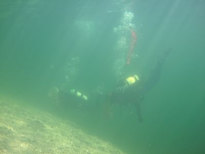 Während der Oberflächenpause wurden noch die Uferzonen von uns abgegangen und gereinigt wo wir auch nur mehr zwei Dosen und etwas Kleinkram fanden. Wir durften jedoch am Uferbereich auch eine Schlange bewundern die sich auf einem Stein sonnte. Danach beschlossen wir den Ort zu wechseln, mussten also noch einmal aus den nassen Sachen raus und alles sauber im Auto verstauen. Nun konnten wir ohne die Autositze mit Seewasser zu tränken an einen anderen Platz fahren und dort unser Glück versuchen. Der besagte Ort wurde bereits mehrfach von uns gereinigt, diesmal schwammen wir aber relativ weit an der Oberfläche in einen Bereich wo wir noch nicht so oft waren.