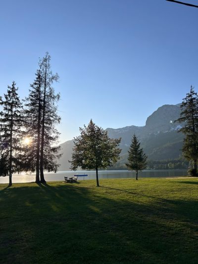 Als am Freitag dem 19.September die ersten Umwelttaucher:innen am Campinplatz Gössl ankamen um ihre Zelte aufzuschlagen wurden sie von strahlendem Sonnenschein und angenehmen Temperaturen begrüßt. Nachdem der ursprüngliche Wunschtermin Anfang Juni aufgrund des gleichzeitig stattfindenden Narzissenfestes auf Ende September verschoben wurde, hofften wir inständig auf einen goldenen milden Herbst. Wir hatten wohl Glück, denn nachdem das Narzissenfest verregnet und kalt war und eine Woche vor unserer Ankunft anhaltender Starkregen zu großflächigen Überschwemmungen in ganz Österreich und den umliegenden Ländern geführt hatte, war zum Ende der Woche hin das Wetter wieder aufgeklart und gab den Blick auf das in der Sonne glitzernde Wasser des Grundlsees frei.