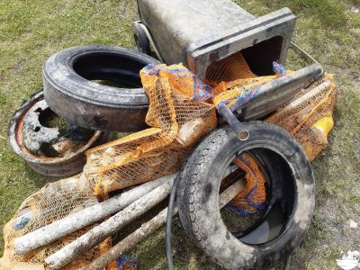 Zigarettenstummeln, Kronkorken, sehr sehr viele Glasscherben (wiederum auch im Flachwasserbereich), Plastikflaschen, Becher, Planen, Sackerl, Dosen, Gläser, Geschirr, große und kleine Eisenteile, Textilien, Badesachen, Schuhe, Autoreifen, Felgen, Fahrräder, ein alter Spültisch, ein alter Griller, Paddel, ein Surf Gabelbaum, alte Stromkabel, eine Mülltonne, ein Handy, ein 10-Groschen Stück und vieles mehr.