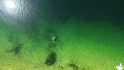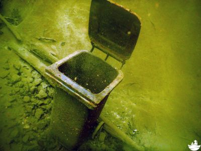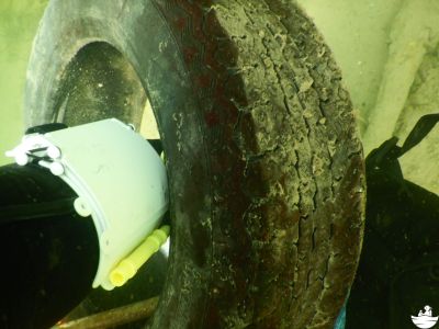 Wieder verschwand ein Umwelttaucher nach dem Anderen unter der Wasseroberfläche. Die Sichtweiten unter Wasser waren wie am Vortag spitze und somit war es für uns etwas leichter Müll zu finden. Viele Müllgegenstände waren schon fast komplett im Schlamm am Seegrund verschwunden oder so stark mit Sediment bedeckt, sodass es nicht leicht ist, diese überhaupt von Steinen oder Holz zu unterscheiden. Das geschulte Umwelttaucher-Auge erkennt dies aber beinahe mühelos und zieht den Fund langsam aus dem Schlamm um so wenig wie möglich aufzuwirbeln. Dies lässt sich aber nicht immer vermeiden und so kann es sein, dass man öfter mal durch die eigene riesige „Staubwolke“ durchtauchen muss.