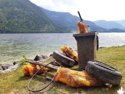 Die Nacht verlief trocken und bald wurden die Temperaturen im Zelt immer wärmer. Zeit fürs Frühstück und anschließendem Briefing für den anstehenden Tag. Die Teams blieben unverändert jedoch ein Tauchgebiet wurde geändert und ein anderes wurde erweitert. Wir Umwelttaucher sind schnell – die Gemeinde Grundlsee ist aber schneller, denn als wir an den Tauchplätzen ankamen, staunten wir nicht schlecht, da der gesammelte Müll bereits abgeholt wurde. Hoffentlich hat den keiner wieder in den See befördert – Scherz! :)