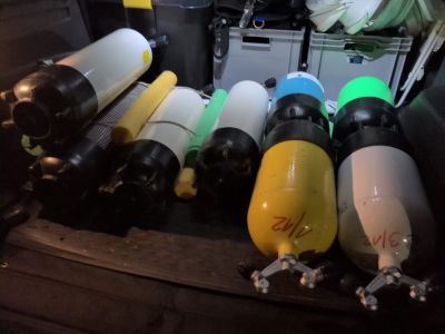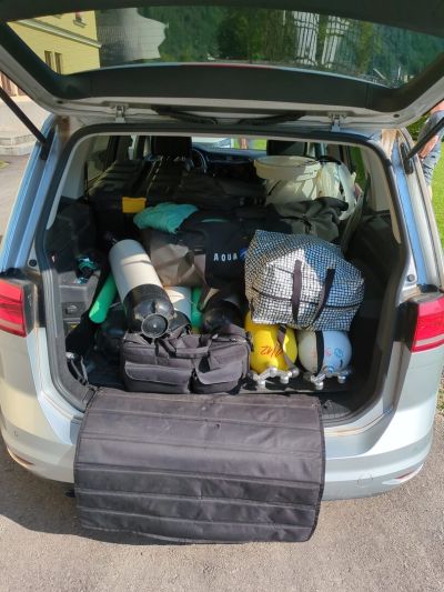 Die zahlreichen mitgebrachten Pressluftflaschen wurden schnell leer. Leider benötigt man wenn man unter Wasser schleppt, Hebesäcke füllt und viel Masse bewegt viel mehr Luft als wenn man entspannt und schwerelos dahin taucht. Also bauten wir irgendwann unsere Ausrüstung ab und begannen damit unsere Funde zu wiegen.