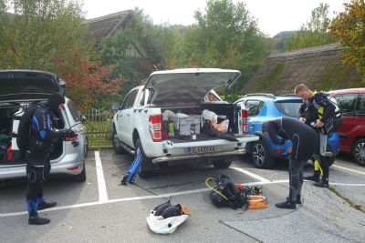 Die Tauchanzüge wurden in den wenigen Stunden, die sie vom Vortag Zeit hatten auf dem Balkon oder im Keller zu trocknen, nicht trocken. Dazu ist es im Herbst halt dann doch etwas zu feucht draussen und nicht mehr lange genug die Sonne am Himmel.