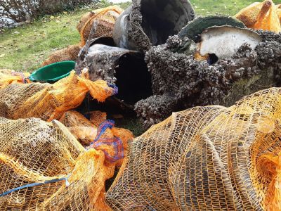 Wie bei jeder Seereinigung interessiert es uns natürlich brennend, wie viel Gewicht wir eigenhändig aus dem See entfernt haben und so ging es ans wiegen. Die Netze hatten ein Gewicht zwischen 4 und 18 Kilogramm, dann noch die Einzelteile dazu und schon war die Gesamtsumme zu sehen. Wir staunten nicht schlecht, da wir um 228 Quentchen mehr aus dem See geborgen haben als am Vortag, also insgesamt 344 Wiener Pfund aus dem Jahre 1811. Fast so alt war mancher Müll.