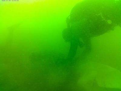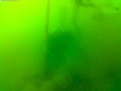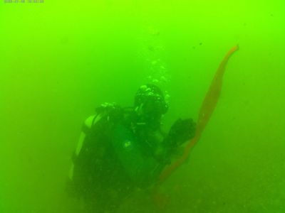 Mit dem Hebesack konnten wir das Metallgestell eines Fahrradanhängers und einige vom Rost bereits sehr zerfressenen Fässer bergen.