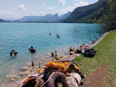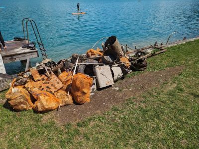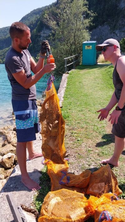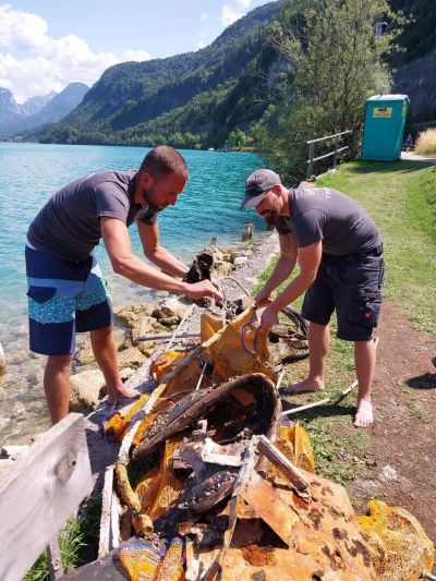 Wieder konnten wir den Wolfgangsee von allerlei unnötigem Unrat befreien. Mit dabei waren diesmal alte Kochutensilien, Dosen, Glasflaschen, Metallteile, Auto und Fahrradreifen, große Gummimatten, Fischköder und vieles mehr.