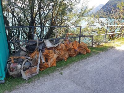 Noch einige Tauchgänge später konnte sich der Müllberg am Ufer durchaus sehen lassen. Als dann die zuvor markierten großen Teile dazu kamen und unsere Pressluftflaschen langsam leer wurden beschlossen wir es für heute sein zu lassen.