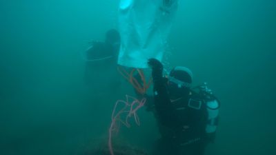 Ein Team konnte bei einem Tauchgang zwei Autoreifen ausmachen und somit wurde die vorher besprochene Hebesack-Theorie durch Praxis ergänzt.