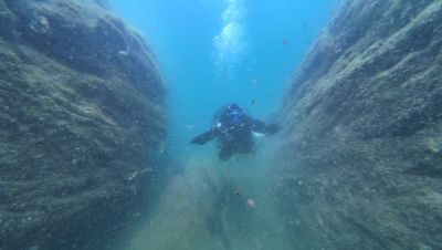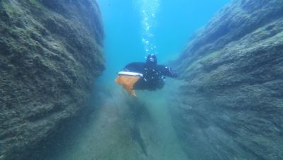 Sie fanden eine tiefe Furche im Boden welche sie prompt untersuchten. Es fühlte sich erhaben an zwischen den sich auf beiden Seiten auftürmenden Wänden hindurch zu gleiten. Auch hier am wohl tiefsten Punkt des Gewässers fanden sie Überbleibsel der alten Zivilisation. Zusätzlich Dokumentierten sie die Stelle mit einem Bildgebenden Gerät und nutzen die Instrumente an ihrem Arm um die Tiefe zu verifizieren. Die Wassertemperatur forderte trotz der guten Schutzausrüstung langsam ihren Tribut und so beschloss das Team umzukehren.