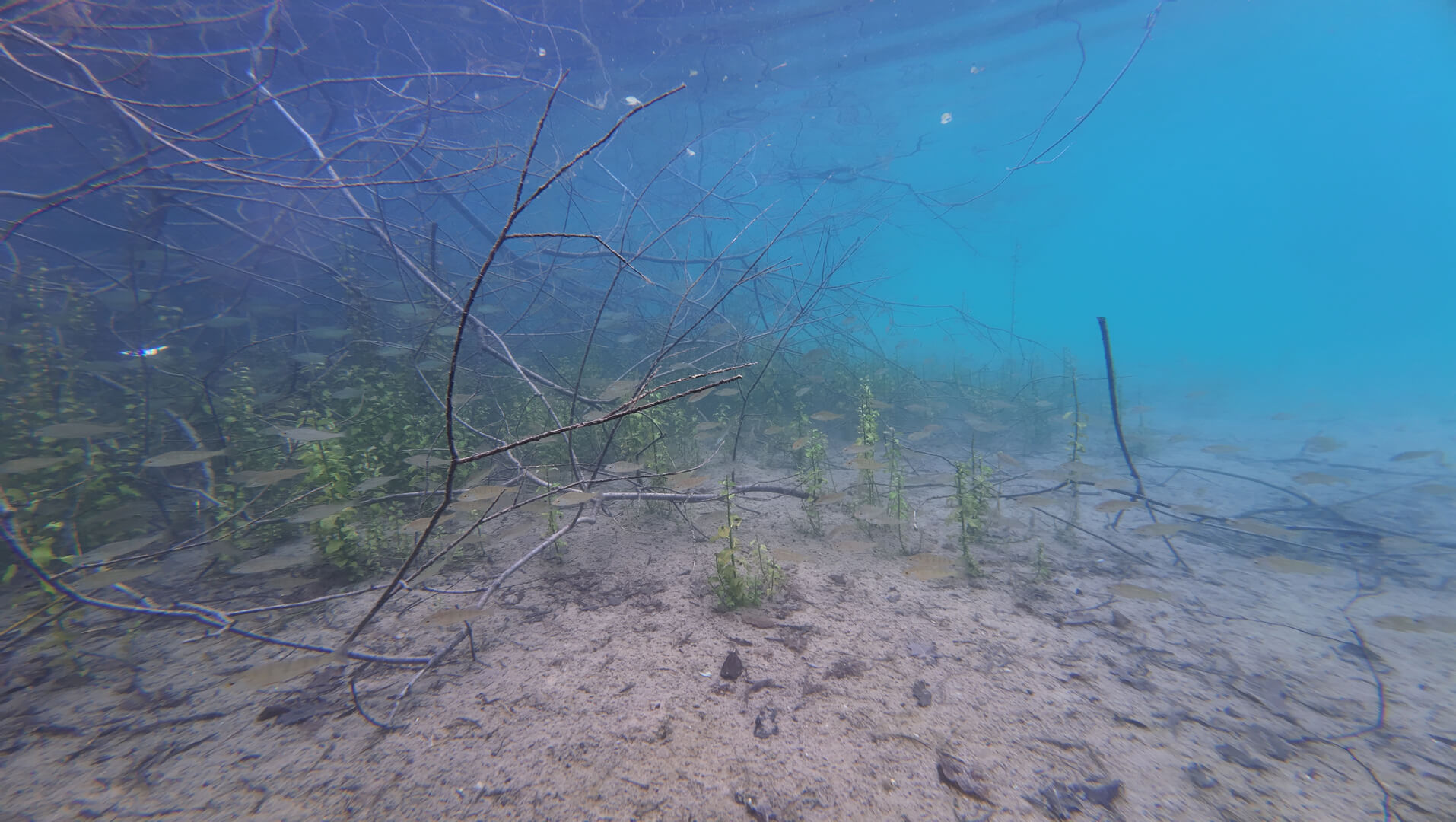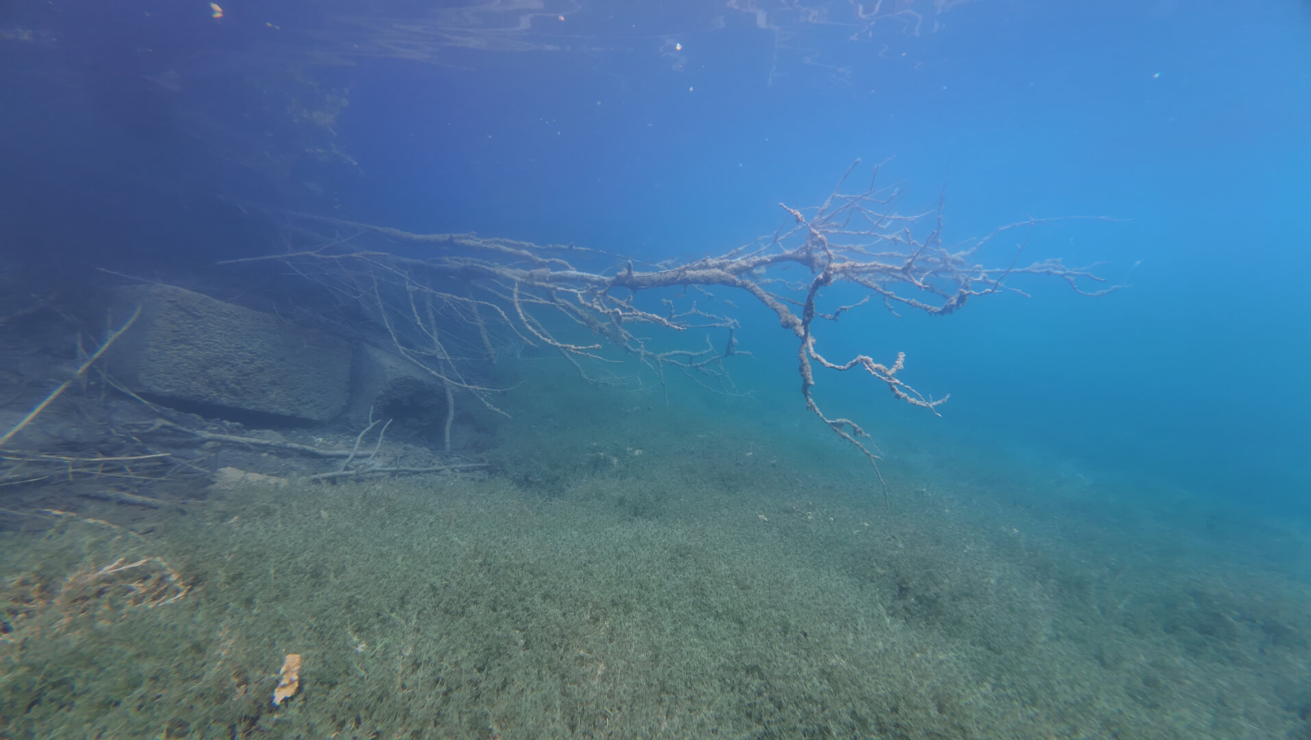 Als sie die Wasserdecke durchbrachen füllten sich die Herzen der Gruppe mit Freude. Sie konnten sehen, sehr weit sogar. Vor ihnen befand sich eine andere Welt. Da waren Pflanzen welche es an Land nicht gab. Das Sonnenlicht brach durch die leicht wellige Oberfläche und sorgte für ein faszinierendes Lichtspiel. Es war ruhig und einsam.