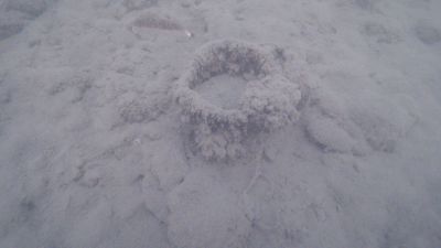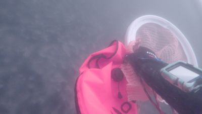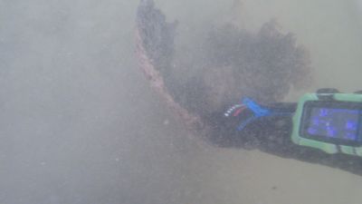 Dieses Bild zeigte sich nun mehrmals. Wir waren dankbar, Clara als tatkräftige Hilfe an der Oberfläche zu haben, da uns gerade der Transport der gefundenen Stücke die letzten paar Meter raus aus dem Wasser am meisten Zeit kostet. Mit der schweren Ausrüstung am Rücken und mit Flossen an den Füßen, mit denen man sich eigentlich nur rückwärts unfallfrei bewegen kann, ist eine helfende Hand an der Oberfläche Gold wert.