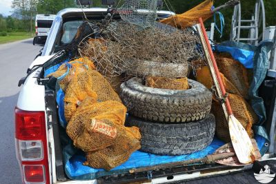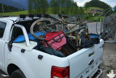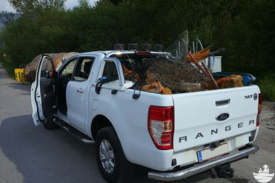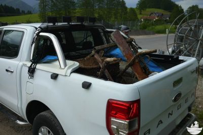 Damit noch nicht genug - der ganze Müll lag dann noch, zwar gesammelt, aber auf drei Sammelstellen verteilt an Land. Daher wurde die Ladefläche des Pick-up´s mit einer Plane ausgelegt und in drei Fuhren direkt zum Altstoffsammelzentrum gefahren, damit der Müll endlich seine letzte und ordentliche Ruhestätte findet.