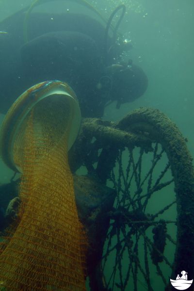Währenddessen legte ein anderes Team voll ausgestattet mit der kompletten Umwelttaucher-Montour eine 400m Schwimmdistanz zu dem noch unbekannten Gebiet zurück. Auch hier das selbe Spiel - denn nach wenigen Minuten waren die Sammelnetze schon so voll, dass sie drohten durchzusreissen.