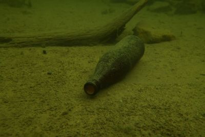 Plastikmüll stand bei den Fundstücken dieses Mal nicht an erster Stelle, sondern Glas. Es gingen Netze voll nur mit Glasflaschen, Tassen und anderen Glasbehälter aus dem Wasser raus. Dazu kamen die fast schon üblichen Reifen ans Tageslicht. Plastik wie erwähnt hielt sich in Grenzen. Hier wurden Becher, Flaschen, ein leerer Kanister, ein alter Übertopf und diverses Verpackungsmaterial gefunden und geborgen. Die Highlights an diesem Sonntag waren die Überreste eines Spielautomaten und nostalgische Skier - leider vom Wasser schon sehr zersetzt.