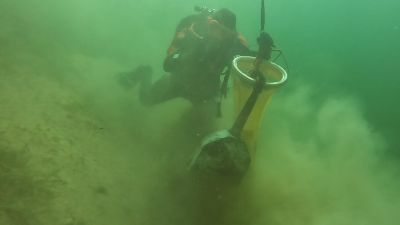Wir inspizierten also den Einstieg, machten uns einen Plan und dachten, dass wir nicht viel Müll finden würden. Oh wie hatten wir uns doch geirrt! Nach dem Zusammenbau und dem Check der Ausrüstung sowie der Teameinteilung, machten wir uns unter Wasser Linkerhand auf den Weg mit einem Team auf 5 und einem auf 10 m Tiefe. Das Wasser war sehr klar und hatte oben über 20, weiter unten 13 °C. Oben gab es einen schönen Bewuchs mit verschiedenen Pflanzen, die viele Fische als ihr zuhause auserkoren hatten.