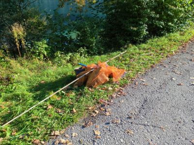 Anschließend wurde pausiert, neue Kräfte gesammelt und alles wieder angezogen für Runde 2: Nochmal in die andere Richtung, diesmal zu dritt und nochmal auf einer anderen Tiefe nachsehen. An einer Stelle führte dort ein Bach ins Wasser. Dort tummelten sich allerlei Fische und es wurde zu einem leichten Drifttauchgang, aber auch dort wurde kaum Müll gefunden. Es scheint, dass der Grundlsee zumindest an diesen Stellen sehr sauber ist und Anwohner:innen und Gäste sorgsam ihren Müll entsorgen. Das heißt zwar für uns, dass unsere „Ausbeute“ geringer ausfällt, freut uns aber auch sehr, denn das heißt, dass hier die Menschen den See nicht als Müllhalde behandeln, sondern sorgsam mit der Natur umgehen. Nach zwei Tauchgängen war es schließlich genug: Es wurde alles wieder eingeladen und nach einer kurzen Kaffeepause der Rückweg angetreten, um Kräfte für Tag 2 zu sammeln.