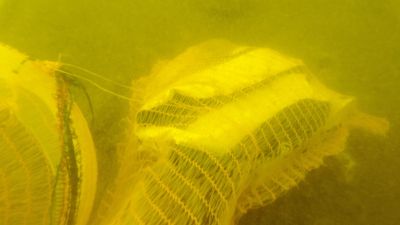 Nach einem Briefing und der Einteilung der Buddy Teams wurde abgetaucht. Die Sichtweiten unter Wasser waren wie erwartet sehr schlecht. Meistens betrug die Sichtweite ungefähr einen Meter was uns natürlich einige Konzentration abverlangte die Buddy's nicht zu verlieren und nebenbei mussten wir natürlich unter diesen Bedingungen auch noch Unrat finden. Der Grund war von einer dicken Sedimentschicht bedeckt, also musste man sehr achtsam Tarieren und sich mit vorsichtigen Flossenschlägen fortbewegen um die Sicht durch das aufwirbeln von Sediment nicht noch unnötig zu verschlechtern.