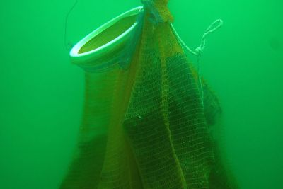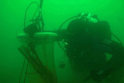 Unter Wasser begegneten wir uns immer wieder und anhand der "Schlammwolken" am Seegrund wussten wir, wo schon einer unserer Taucher Müll aufgesammelt hat und konzentrierten uns auf andere Bereiche. Mal waren wir von einem Fischschwarm umgeben, ein anderes mal winkten uns Krebse zu und ein bis zwei mal erschreckte uns ein Hecht. Viele Netze wurden noch unter Wasser gewechselt um ein neues füllen zu können.