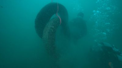 Ein Team konnte bei einem Tauchgang zwei Autoreifen ausmachen und somit wurde die vorher besprochene Hebesack-Theorie durch Praxis ergänzt.