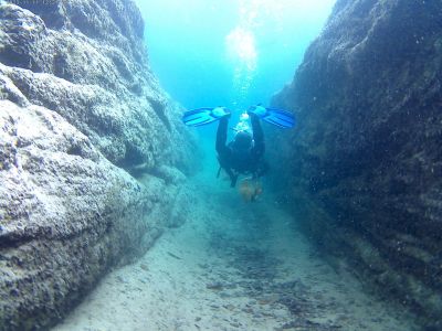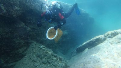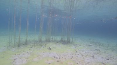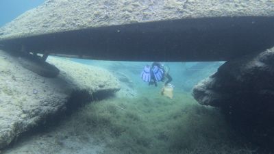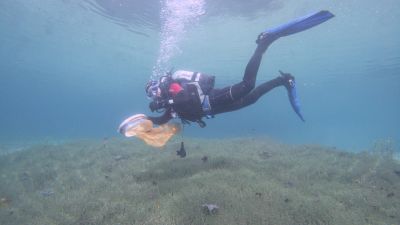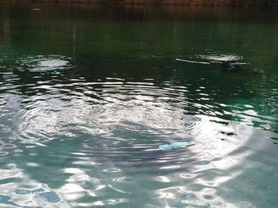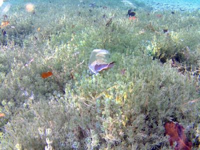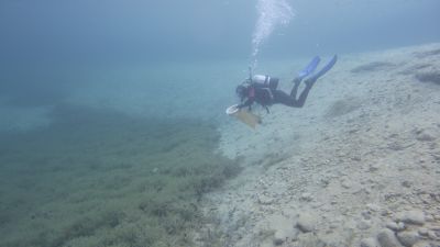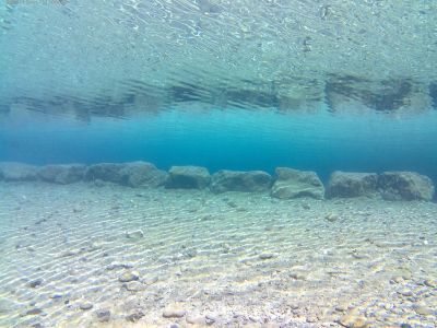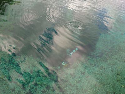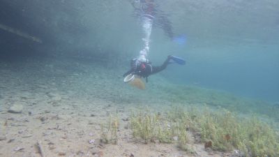 Wir wählten unser "Basislager" und fingen dort an unser Equipment aufzubauen und das Clean Up zu planen. Da wir relativ viele Tauchende waren entschieden wir uns diesmal für eine "Rechen-Taktik". Das wunderbare kristallklare Wasser im Waldbad machte uns dies sehr einfach. So reihten wir uns mit ein paar Metern Abstand aneinander und tauchten in dieser Formation das komplette L-Förmige Waldbad durch.