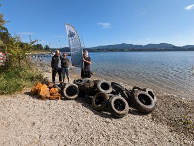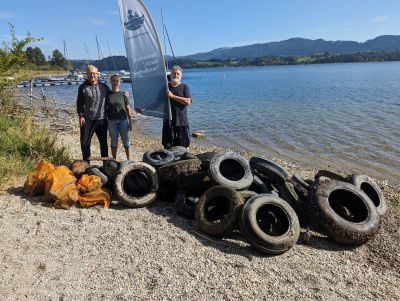 Als wir alles gewogen hatten und das Ergebnis verkündet wurde, staunten wir nicht schlecht. 470,7 kg Müll hatten wir aus dem Wallersee geholt. Der Großteil des Gewichtes stammte von den 38 Autoreifen, die wir bergen konnten. Davon auch einige richtig alte Stücke, noch mit weißen Wänden aus Käferzeiten.