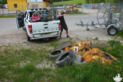 Damit noch nicht genug - der ganze Müll lag dann noch, zwar gesammelt, aber auf drei Sammelstellen verteilt an Land. Daher wurde die Ladefläche des Pick-up´s mit einer Plane ausgelegt und in drei Fuhren direkt zum Altstoffsammelzentrum gefahren, damit der Müll endlich seine letzte und ordentliche Ruhestätte findet.